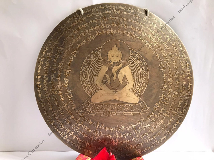 Gong is a Special and important object in Tibetan Buddhism Culture. The sound of the gong needs to be deep and energetic. In modern-day, Tibetan gong has been popular as a healing and meditation object. This gong has a beautiful carving. It is made with seven different metals.