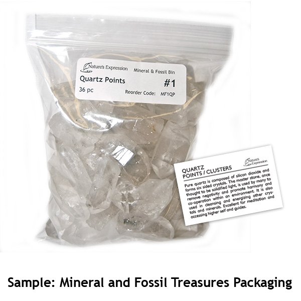 Bin sized mineral and fossil treasures are bagged in pre-specified size ranges and piece counts. They are ideal for selling in one of our multi-bin retail displays or in small bins that you might already use in your store. All items come bagged and include a quantity of information cards to match the piece-count of the item you purchase. Information cards will help you merchandise and teach your customers about these beautiful creations from mother nature.