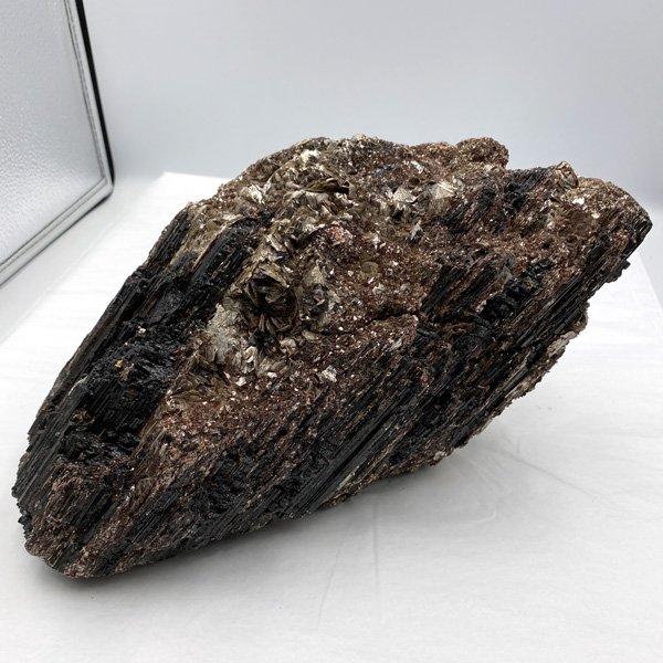 Rough black tourmaline with mica is in a natural form without cutting or polishing.