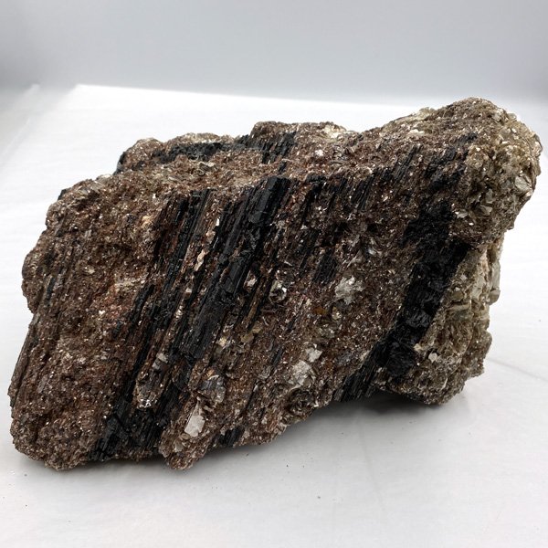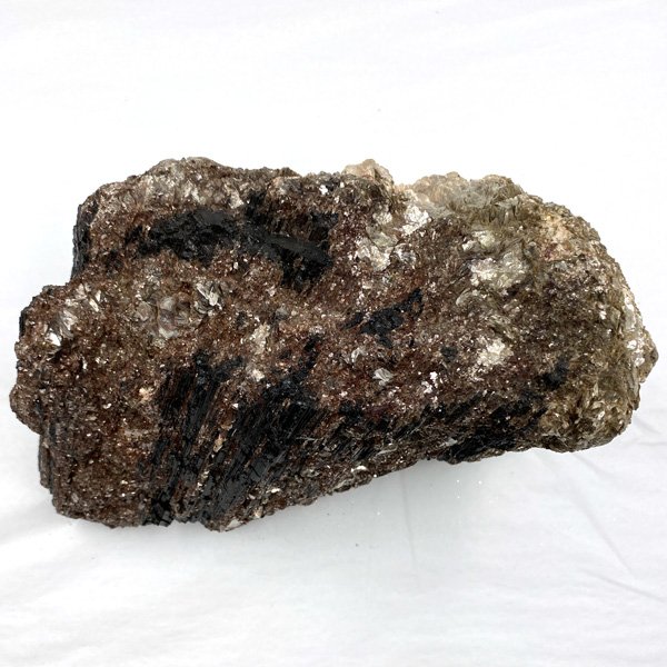 Rough black tourmaline with mica is in a natural form without cutting or polishing.