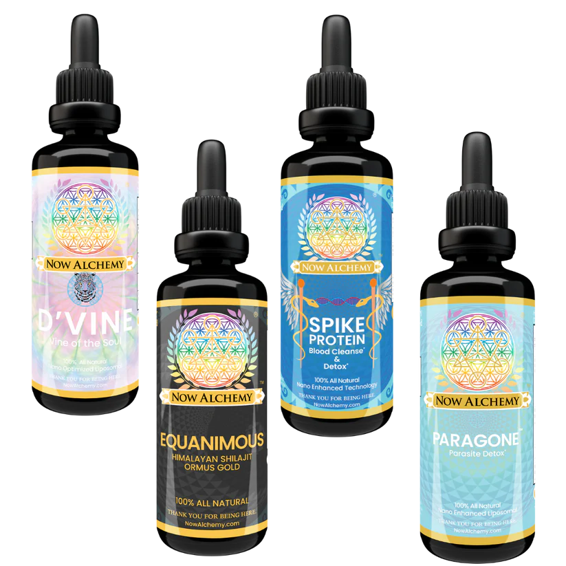 1 bottle of Equanimous, 1 bottle of Paragone, 1 bottle of Spike Protein Detox, 1 bottle of D’vine