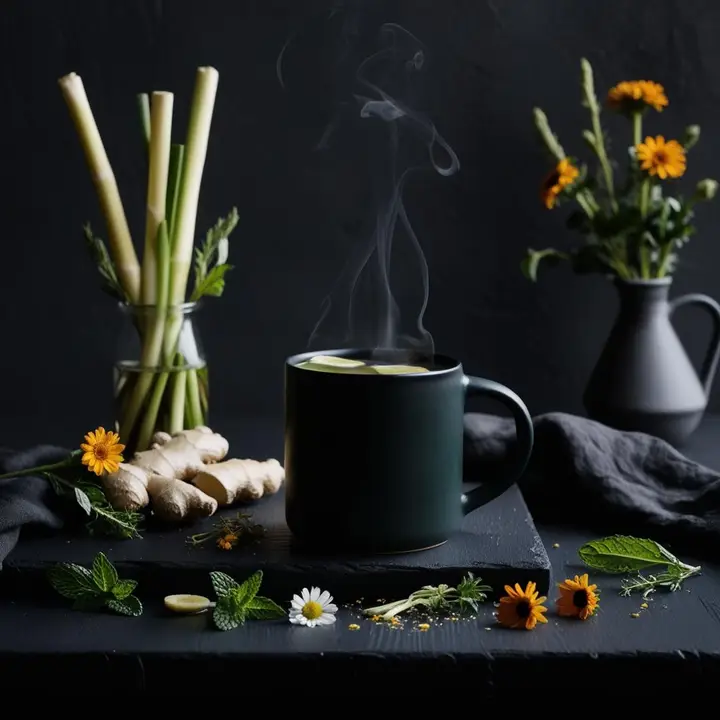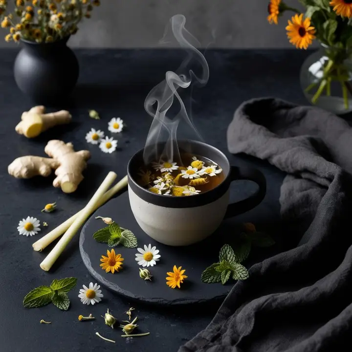 • Ingredients: *Lemongrass, *Mint, *Calendula Flowers, *Chamomile Flowers, *Rose Petals, *Ginger Root, *Licorice Root, *Angelica, and *Burdock Root. *organic