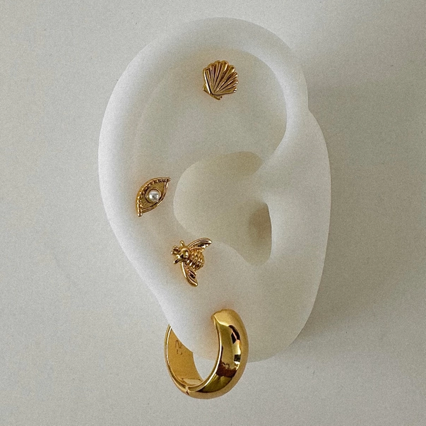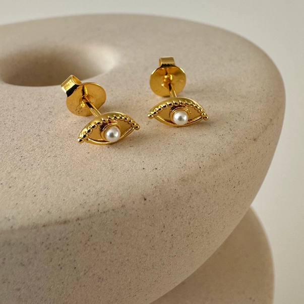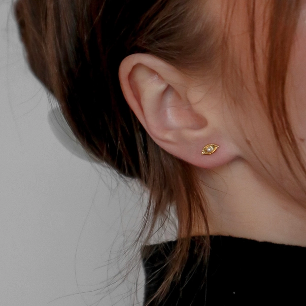 A small evil eye stud with a little Pearl.