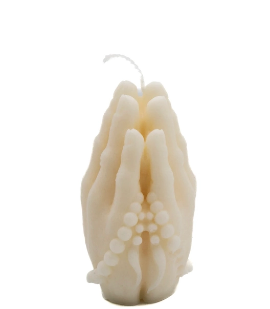 A simple but elegant rosary and hands in prayer candle. A lovely addition to your Christmas decor this winter season. Perfect on a holiday mantel or tablescape.