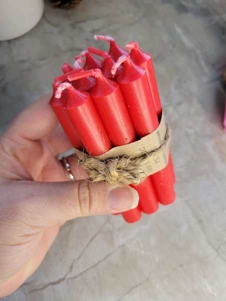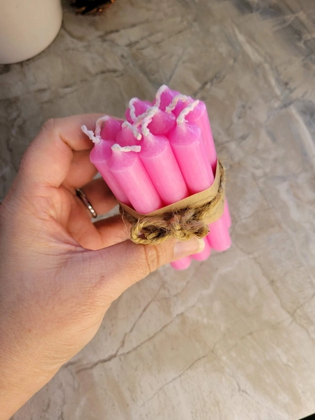 Sets of 10 mini 4″ chime/spell candles Each Candle is 4” Tall and 1/2” in diameter Solid Color All the Way Through, Dripless and Smokeless Burn time about 2 hours.
