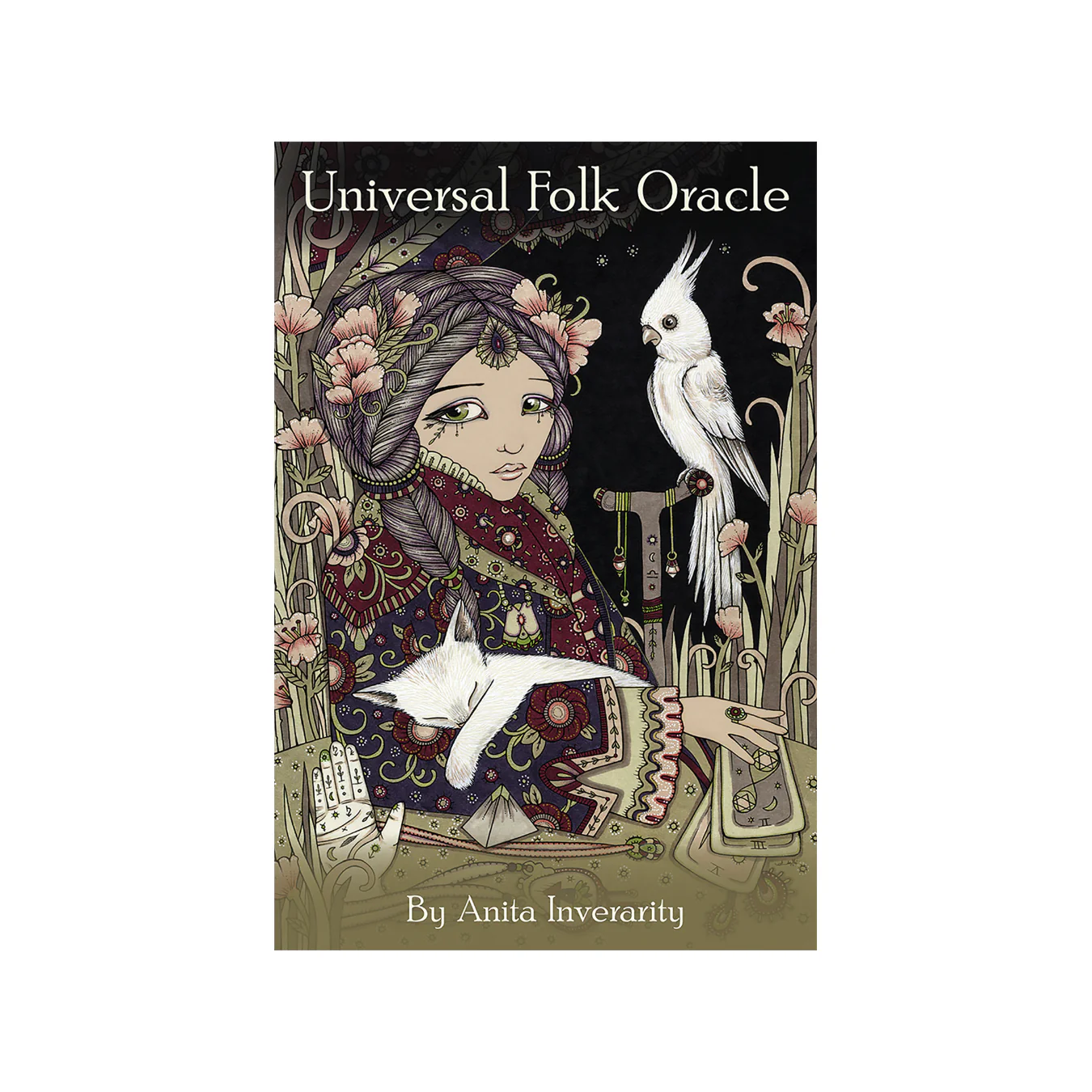 Universal Folk Oracle introduces 44 wise young women, attired in rich colors and patterns to reflect the complexity of our inner selves and the various stages of our growth. The artist has created this culturally nonspecific “universal folk” style to help us bond together as a unified world community. For each card, a healing crystal is also identified to help with your intuitive inquiries and self-care practices. Universal Folk Oracle guides us to discover and master our own universe.